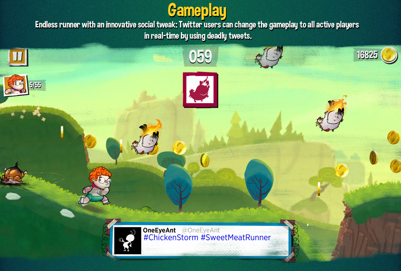Endless runner with an innovative social tweak: Twitter users can change the gameplay to all active players in real-time by using deadly tweets.